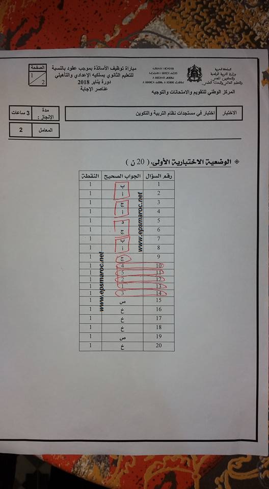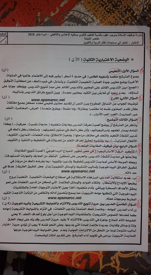 عناصر الاجابة لمستجدات نظام التربية والتكوين بالنسبة للتعليم الثانوي الإعدادي و التاهيلي دورة يناير 2018