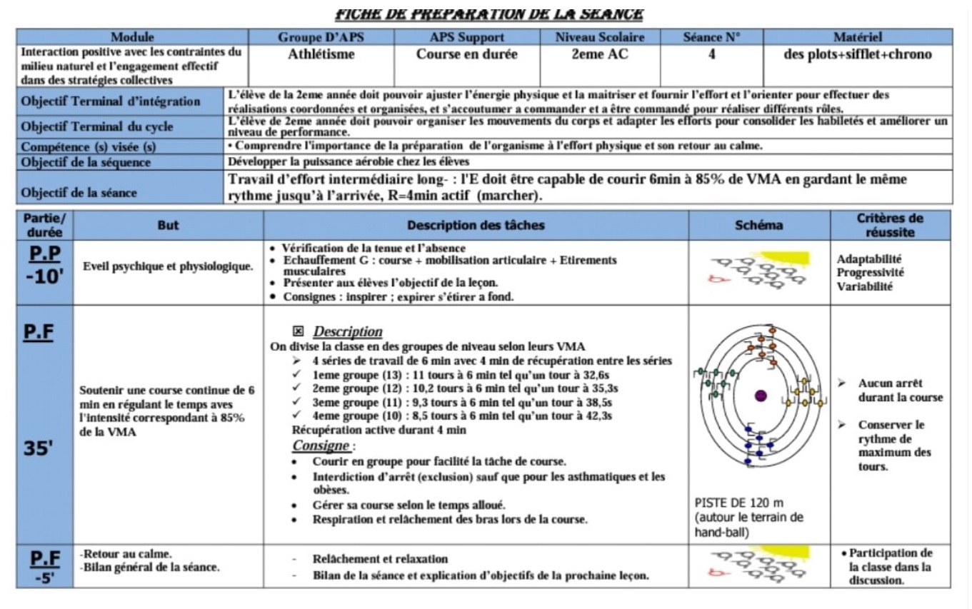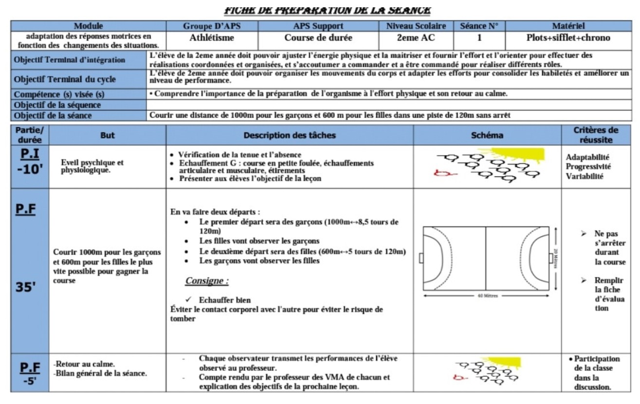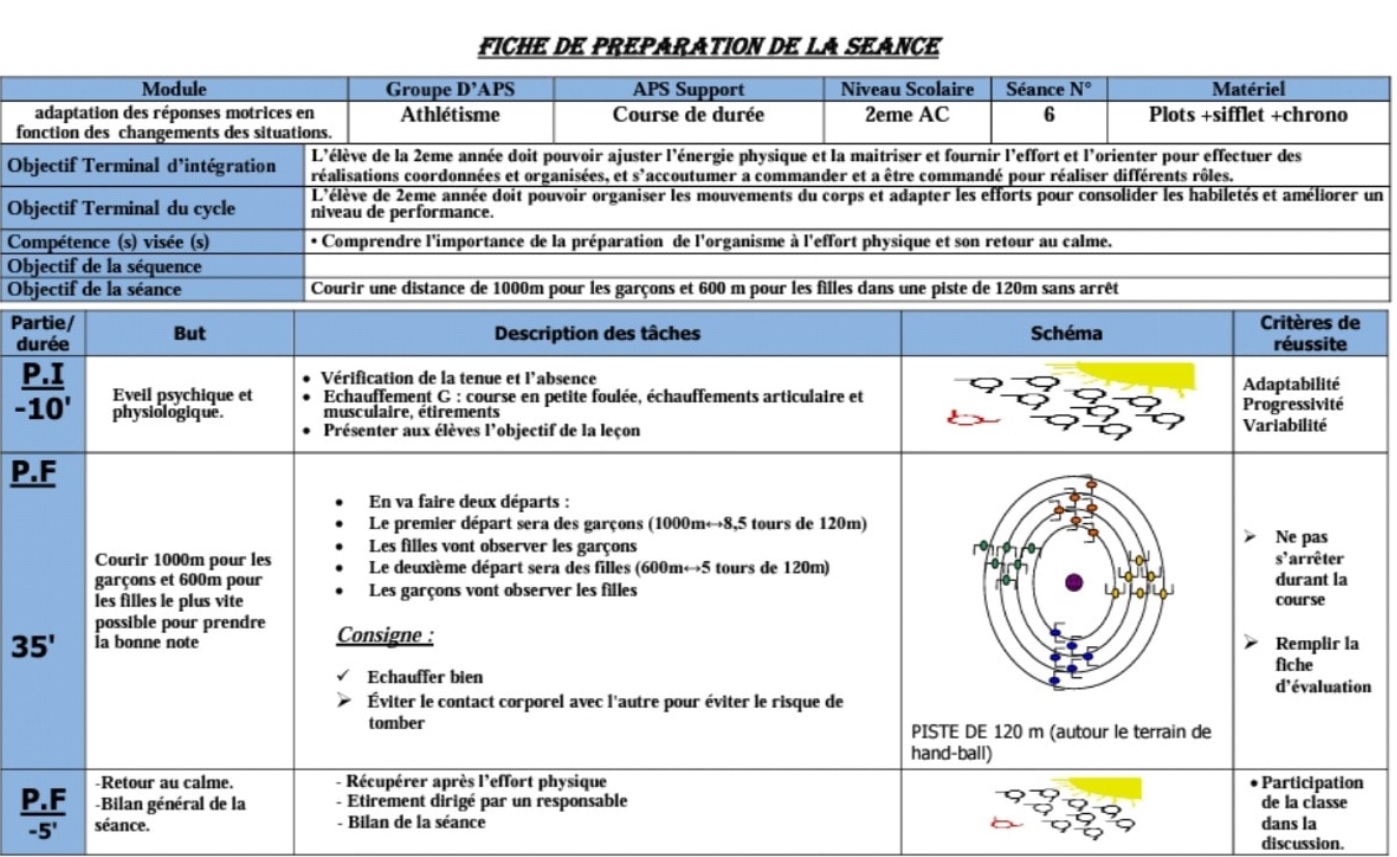 un nouveau cycle de la Course de durée pour les 2ème année collégial selon les orientations pédagogiques Août 2009