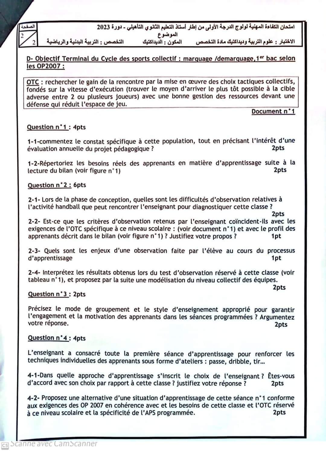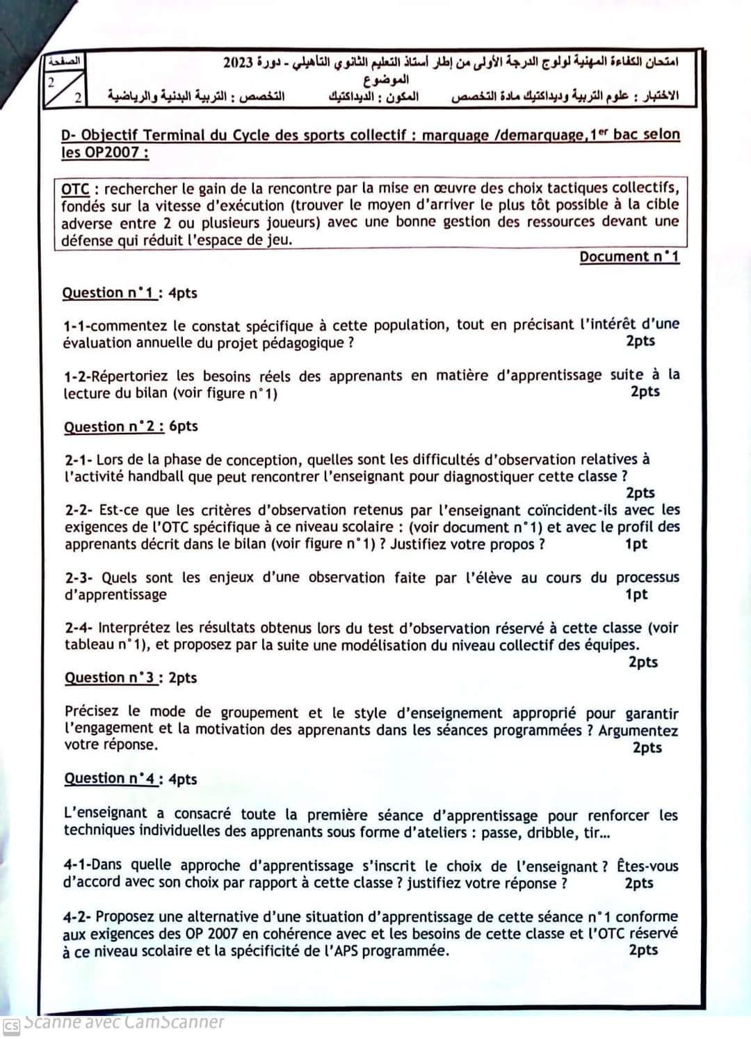مواضيع امتحانات الكفاءة المهنية لمادة التربية البدنية والرياضية بالسلكين الاعدادي و التأهيلي برسم سنة 2023.