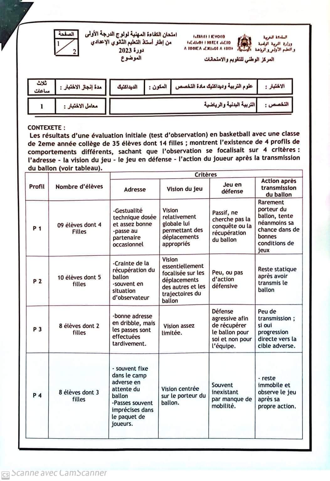 1. Exll 🗂️ امتحان الكفاءة المهنية لولوج الدرجة الأولى من إطار أستاذ التعليم الثانوي الإعدادي- دورة 2023 ( يوليوز 2024 )تخصص التربية البدنية والرياضية